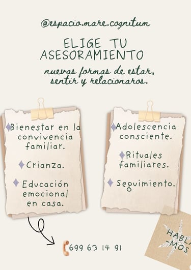 asesoramiento familiar para mejorar tus habilidades parentales, mejorar la convivencia con tu hijx/familia, cómo crear hábitos y rutinas, la regulación emocional, la resolución de conflictos... cualquier aspecto que te interese o preocupe.